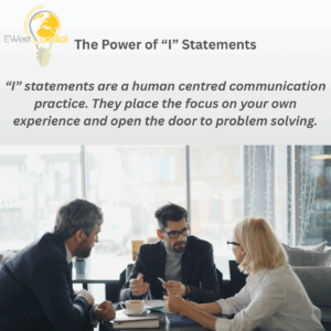 “I” statements are a human centred communication practice. They place the focus on your own experience and open the door to problem solving.